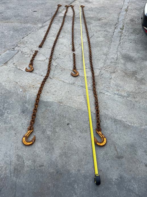 Lanci su debljine 13 mm,nosivosti 10t,2 su dužine 4m,a dva 2,6m. Prodaju se u kompletu.