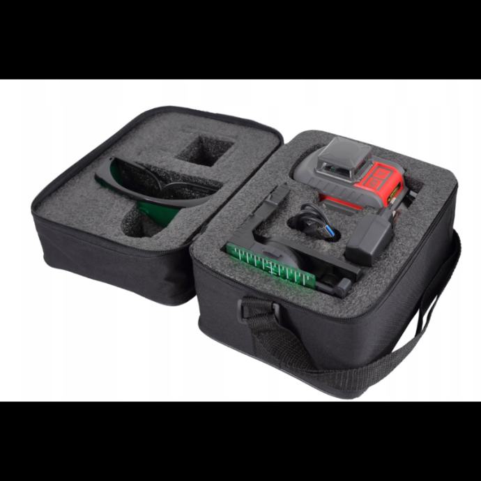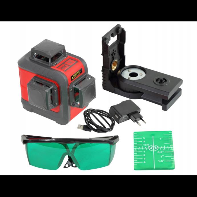 multilaser PROLINE je višenamjenski 3D cross line laseroprema postavlja savršeno ravne referentne linije na zidu (horizontalne i vertikalne), koje podupiru sve završne i opće građevinske radovelaser ima 3 laserske glave, zahvaljujući kojima korisnik može raditi s tri laserske ravnine - u rasponu od 360° svakasimultani prikaz omogućuje definiranje pravog kuta, što je korisno, primjerice, u građevinskim i završnim radovima (npr. polaganje pločica). Zaključavanjem kompenzatora, instrument se može naginjati i koristiti dijagonalne linijevalna duljina lasera je 515-520nm (zelena zraka)2x okomito (360°)1x razina (360°)preciznost laserske zrake: 3mm/10m2800mAh Li-Ion baterijaradni domet 20mmogućnost suradnje s tronošcima i motkamamogućnost suradnje s detektoromtri neovisno generirane zelene zrake u tri ravninevrhunski samonivelirajućimogućnost blokiranja grede i rada s kosinamanačin rada OUT DOOR - za rad na otvorenom s detektorom (prodaje se zasebno)4 x vidljivija zelena laserska zraka!Klasa brtvljenja IP54osim toga, opremljen snažnim magnetom u dršci, omogućuje montiranje lasera na okomite metalne profile.punjivo putem Micro USB-a]]>