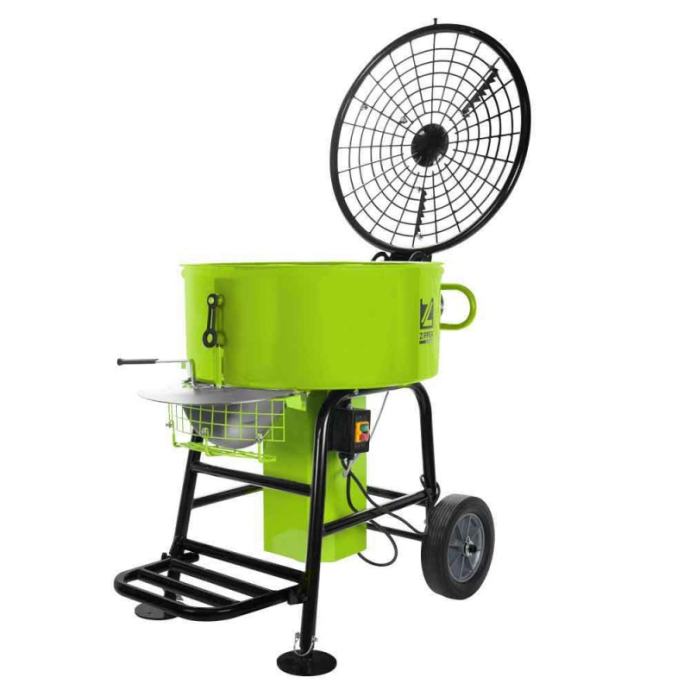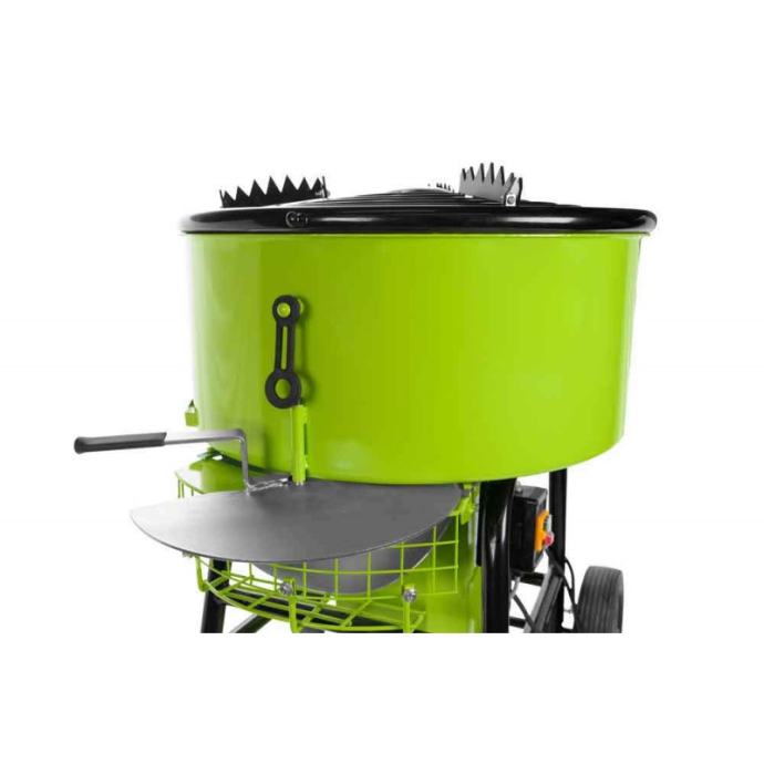 - prisilna mješalica za beton sa zapreminom bubnja od 120 l (maks. 54 kg)- visina bubnja 305 mm- bubanj Ø 725 mm- rotacija miksera 31 min-1- visina ispusnog otvora varijabilna od 530-675 mm (4 koraka)- sklopivi nosač žlice (visina do izlaza 328 mm)- mjenjač (motor / lopatice miješalice)- pokretni uređaj za lakši transport- sigurnosni prekidač za poklopac TEHNIČKI PODACI:Podaci o motoru:snaga motora s1 u W 1100napon 230V / 50Hzbrzina u min-1 1400Mjere:ukupne dimenzije u mm 880x770x1070Težina:bruto težina u kg 146neto težina u kg 123Ambalaža:širina pakiranja u mm 774dužina pakiranja u mm 997visina pakiranja u mm 1.154