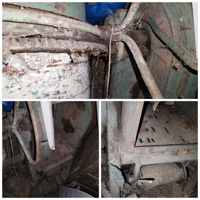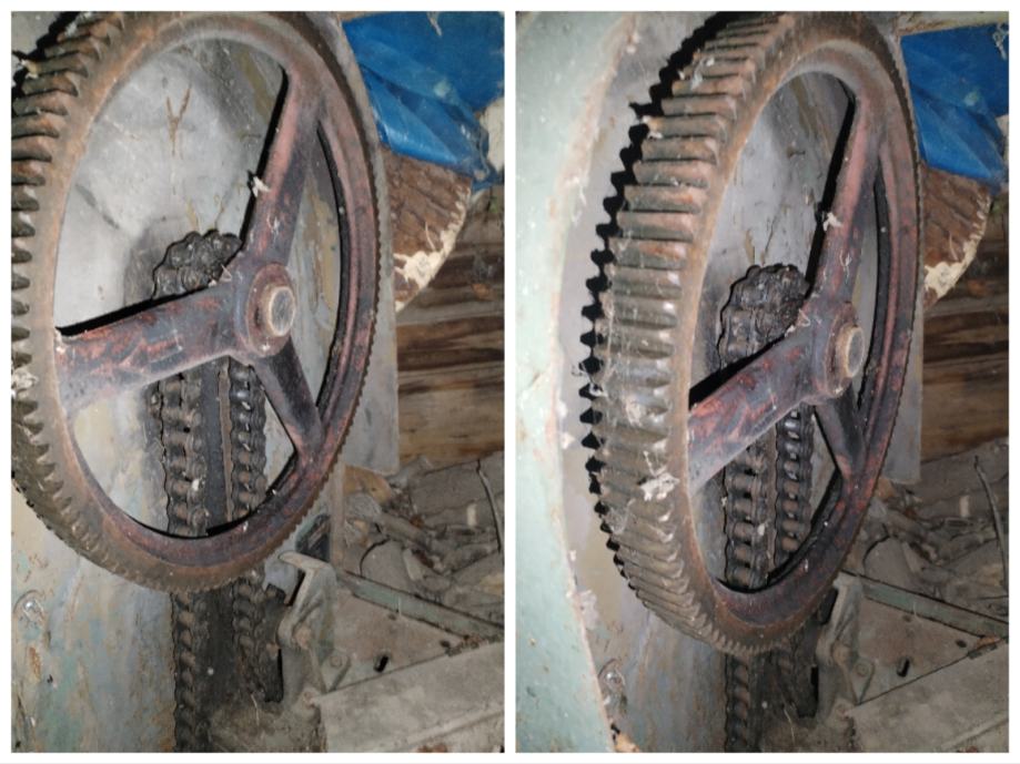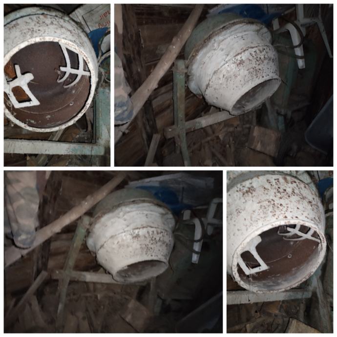 Na postolju miješalice vidljiv je kolut za sajlu, prijenosni lanac........