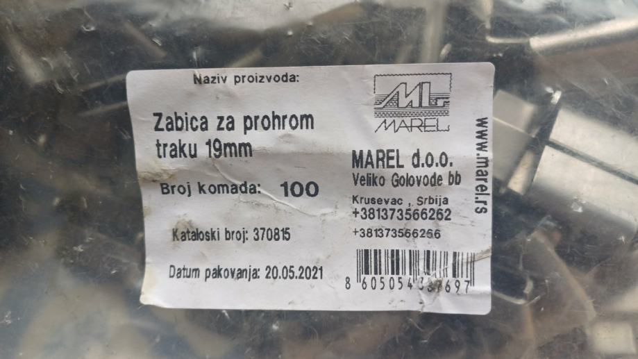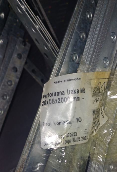 Radi se o 20 paketa nove perforirane trake M8 20x08x2000 mm. U svakom paketu se nalazi 10 komada. Uz to idu i pripadajuće žabice 19 mm - ukupno 1000 komada (10 paketa po 100 komada).