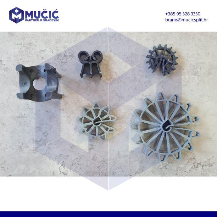 Plastični distanceri za beton imaju veoma važnu ulogu za pozicioniranje armaturnih mreža i armaturnih šipki u betonskoj ploči, betonskom stubu, betonskom zidu (platnu) betonskom montažnom elementu., (20 mm-50mm)