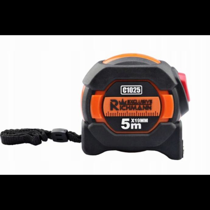 opremljen mehanizmom za automatsko zaključavanje "AUTO-STOP" trake tijekom odmotavanjajasni brojevi i jasno vidljiva ljestvicatraka se može smotati pritiskom na poseban gumb koji otpušta bravu, a nalazi se u prednjem dijelu tijelamehanizam za namatanje radi brzo i glatkona početku trake nalaze se jaki neodimijski magneti koji olakšavaju početak mjerenja od metalnih elemenatakuka s rupom kojom počinje mjerenje čvrsto je pričvršćena s tri zakoviceposeban dizajn mjerne posude štiti ruku od ozljeda prilikom kotrljanjaprekriven najlonom kako bi se spriječilo lomljenje i olakšalo čitanje na sunčanom danunajlonski premaz dodatno sprječava koroziju ili abraziju kamencamjera ima najlonsku narukvicu od čvrste plastikeergonomski oblik presvučen protukliznom ABS gumomopremljen metalnom kopčom za remenčvrsta kvaliteta izrade jamči dugotrajnu upotrebumjera zadovoljava sve europske CE standardeTehnički opis:dužina 5mširina 19mmklasa točnosti I (pogreška mjerenja manja od 0,6 mm na 5 metara)najlonski premazAUTO-STOP Dadvostrana mjerna traka Dazaštita prstiju DaCE standarditežina 0,225 kg]]>