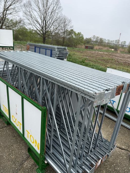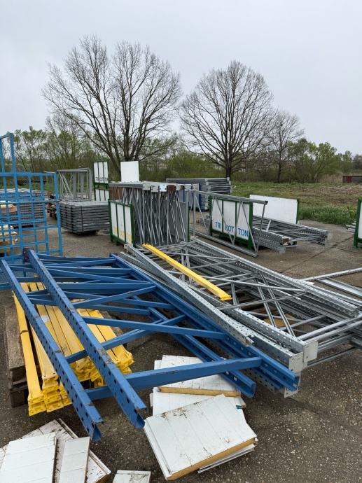Prodajem rabljene prečke za širokorasponske regale. Dostupne su u dvije izvedbe – žute i pocinčane (sive) i razlicite duzine, složene na paletama u većim količinama. Odgovaraju za montažu skladišnih regalnih sustava šireg raspona.