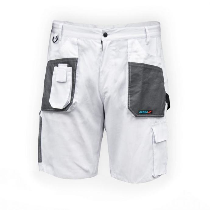 Zaštitne kratke hlače iz linije izrađene su od mješavine poliestera i pamuka. Ovaj materijal s težinom od 190 g / m² osigurava dobru cirkulaciju zraka i slobodu kretanja. Ima funkcionalne džepove, uključujući i džep za pametni telefon. Trostruki šavovi koriste se za povećanje čvrstoće hlača. Zbog bijele boje, hlače se posebno preporučuju soboslikarima ili gipsarima. Savršen za tople dane.Značajke:20% pamuk + 80% poliesterU skladu s EN ISO 13688: 2013Težina 190 g / m29 džepova, od kojih se 6 pričvršćuje čičak trakomTrostruko šivanjePodešavanje širine struka pomoću elastične trake i gumbaPrivjesak za ključevePetlja za čekićSpecifikacije:Veličina S / 48]]>