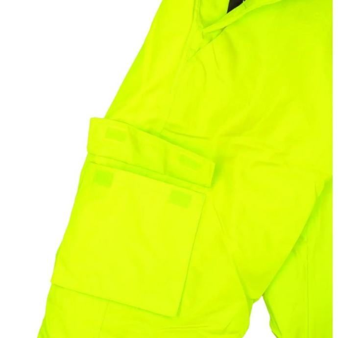 reflektirajuće jakne izrađene su od tkanine Oxford 300D težine 180 g/m²tkanina pruža otpornost na vjetar i vodu do 2000 mmosim toga, postoje vodootporni šavovi. Hlače imaju prošivenu podstavu od poliestera od 180g/m² i podstavu od tafta. Hlače imaju elastični pojas i podesive naramenice s ušivenom gumicompraktični i funkcionalni džepovi i petlja za čekićkako bi se osigurala sigurnost u teškim uvjetima ili nakon kiše, hlače imaju reflektirajuće trake na nogama i u strukutrake su toplinski zavarene, široke 5 cm i imaju CE certifikat prema EN20471dostupne veličine od S do 3 XLZnačajke:veličina: Lvanjski sloj Oxford tkanine 300D 100% poliester poliuretan m PU presvučen, 180g/m2podstava od 190T poliestera, taft, 50g/m2prošiven sa izolacijom od 100% poliestera, 180g/m2vodootpornost 2000 mmvodonepropusni šavoviuklonjive noge za laku ventilacijudodatna reflektirajuća traka u pojasu hlačapraktični i funkcionalni džepoviduge naramenice dodatno produljene čvrstom gumomdržač za čekićžuto-crna bojareflektirajuće "heat sea m" trake širine 5 cm i CE EN 20471 certifikatom osiguravaju vidljivost u teškim uvjetimahlače proizvedene u PPE kategoriji IIcertificiran prema CE standardima: EN 13688 za opću zaštitnu odjeću, EN ISO 20471 za odjeću visoke vidljivosti (razred vidljivosti 2) i EN 343 za vodonepropusnost]]>