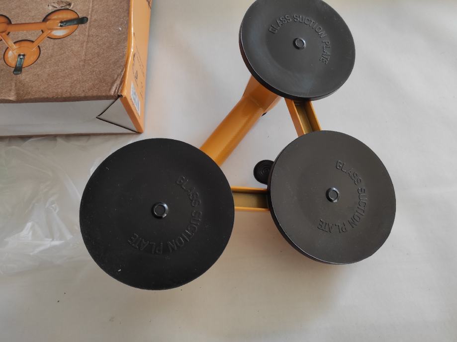 Prodam vakum ručke trostruke sigurnosti za NOŠENJE velikih povrsina,stakla ,pločica metrenih i više iverice ,gips ploča ili namještaja za podizanje i NOŠENJE.prodam kom.sa tri diska za 45 e. Alat je iz aluminija ,znaci nije lomljiva plastika, vec trajno dugo traje. Moguča dostava postom.