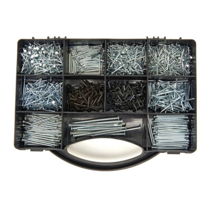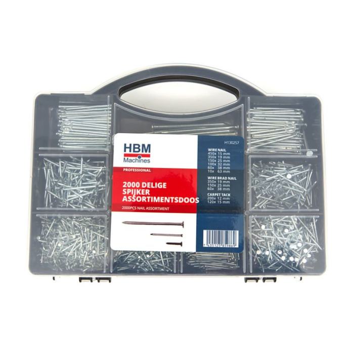 Set ne smije nedostajati u vašoj radionici ili garaži kako biste mogli stvarati prekrasne strukture.Ova HBM kutija s izborom čavala od 2000 komada sastoji se od žičanih čavala sa i bez glave i čavala/čavlića za tepiheSadržaj seta:S glavom450x15 mm350x19 mm150x25 mm100x32 mm60x38 mm10x63 mmBez glave350x190 mm150x25 mm60x38 mmČavlić za tepih200x12 mm120x15 mm]]>