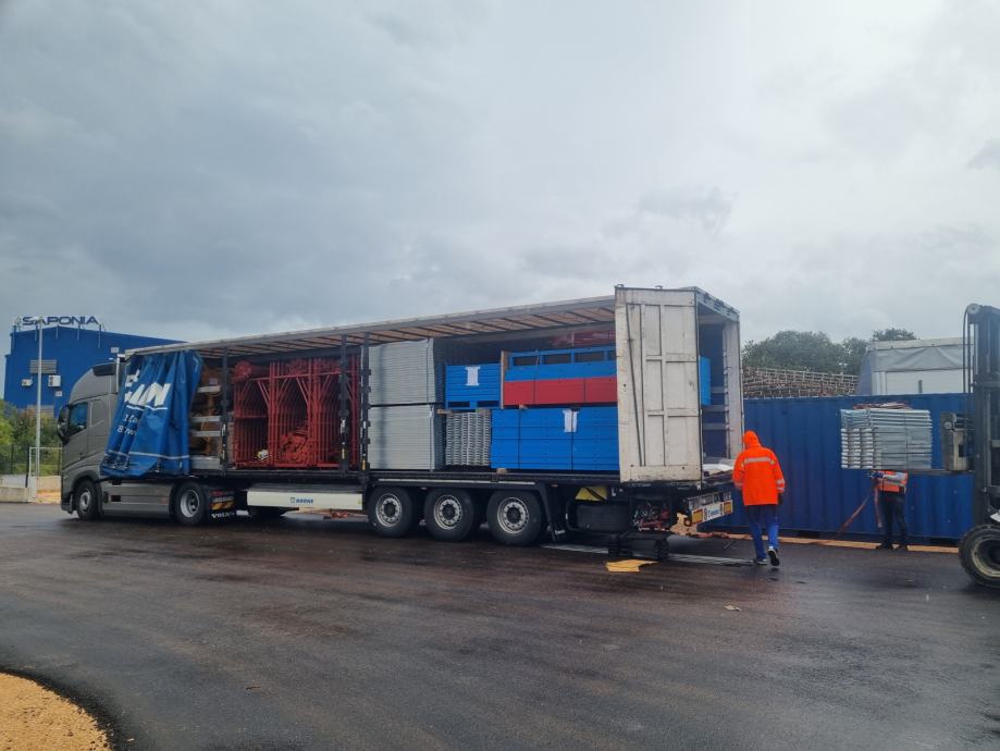 Fasadna skela obojana sa pocinčanim podovima.