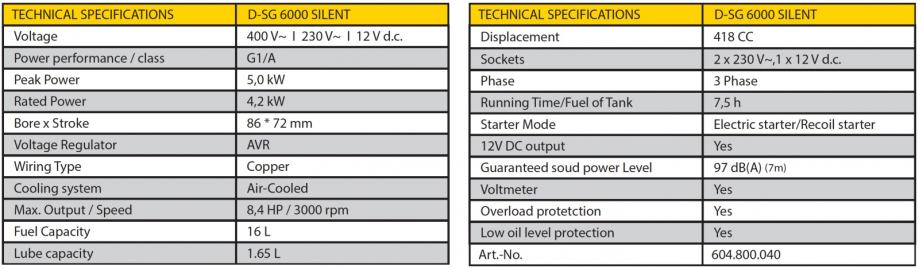 TEHNIČKI PODACI: D-SG 6000 SILENT