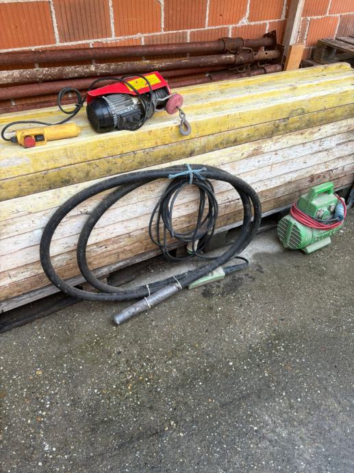 Prodajem 30 komada građevinskih štehera i 16 komada građevinskih tregera po cijeni od 10 €/kom. Vibrator sa pretvaračem, cijena : 500€ i Webberova dizalica, cijena : 150€.
