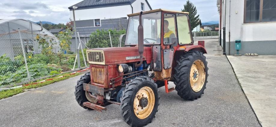 Traktor UNIVERSAL 445 DT, godina 1986., gume 70%, s kompresorom, instalacijom zraka za prikolicu, kompletnom ojačanom konzolom za plužnu dasku i 2 hidraulička priključka za dasku, hidrauličkim volanom.