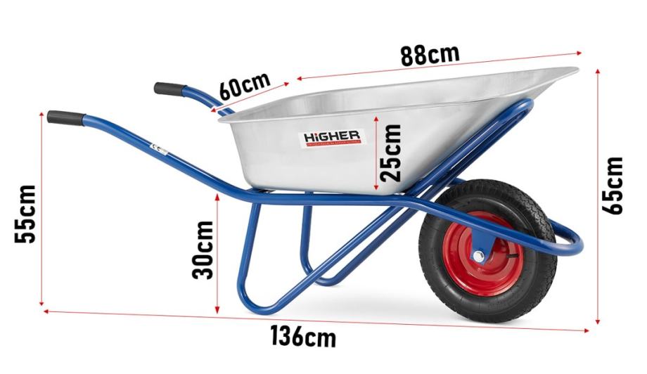 Vrtna kolica s kapacitetom punjenja od 130 L i maksimalnom nosivošću od 210 kg izvrstan su alat za svakodnevni rad. Savršena su za vrtlarenje, poljoprivredne i građevinske radove.