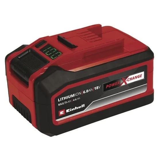 Einhell 18 V 4-6 Ah Multi-Ah PXC PLUS član je višenamjenskog i potpuno izmjenjivog Power X-Change akumulatorskog sistema. Power X-Change punjive baterije mogu se univerzalno koristiti za napajanje i izdržljivost svakog bežičnog alata iz cijele obitelji proizvoda u vrtu i radionici. Prednosti za kupca su očite: Jedna punjiva baterija i jedan punjač za sve alate ne samo da štede značajne troškove kupnje, univerzalna upotreba također pomaže u zaštiti okoliša i pruža fleksibilnost u kući i vrtu. Također uklanja neurednost i kaos zbog različitih punjivih baterija i punjača za svaki zaseban alat. Zahvaljujući Multi-Ah tehnologiji, za rad se može koristiti i 6 Ah snaga za maksimalno trajanje rada ili 4 Ah snaga koja manje opterećuju bateriju i daje do tri puta dulji životni vijek. Najnovija generacija li-ion baterijskih ćelija donosi 100% više snage za maksimalnu snagu u svakoj primjeni. Štoviše, PLUS tehnologija predstavlja dodatnu snagu za energetski intenzivne poslove. Uz to, visokokvalitetna punjiva baterija odolijeva memorijskom efektu i samopražnjenju koje je obično povezano s baterijama, radi postizanja konstantne velike snage. Multi-Ah Power X-Change PLUS od 18 V 4-6 Ah je napredna punjiva baterija iz Power X-Change obitelji i također je pogodna za TWIN-PACK upotrebu u 36 V aplikacijama. ABS - Aktivni sustav upravljanja baterijom ima mikroprocesor za trajno praćenje parametara baterije. Stoga osigurava maksimalnu sigurnost, optimalne performanse alata, maksimalno vrijeme rada i maksimalan životni vijek. Točna, trenutna razina napunjenosti može se provjeriti na digitalnom zaslonu. Kućište je dizajnirano tako da bude otporno na prašinu, koroziju i mehaničke utjecaje. Gumene obloge baterije omogućuje visoku zaštitu, uz dobro prianjanje. Postoji zaglavnik koji omogućuje jednostavno uklanjanje svakog alata.