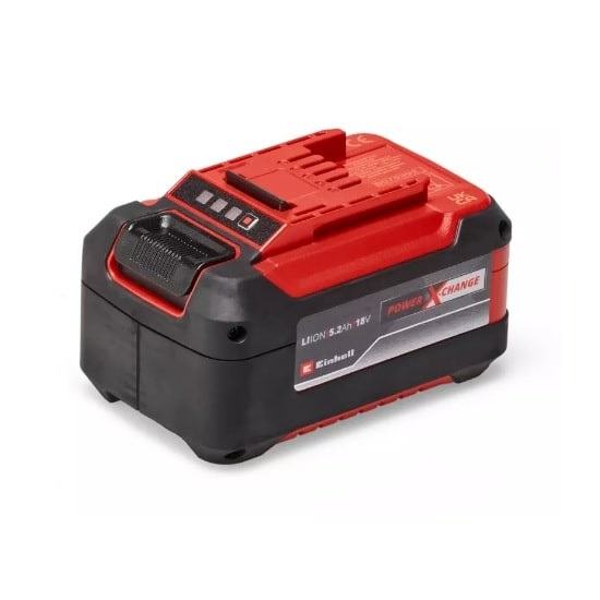 Einhell 18 V 5,2 Ah Power X-Change PLUS baterija član je višenamjenskog i potpuno izmjenjivog akumulatorskog sistema Power X-Change tvrtke Einhell. Power X-Change punjive baterije mogu se univerzalno koristiti za napajanje i izdržljivost svakog akumulatorskog alata iz cijele obitelji proizvoda za vrt i radionicu. Prednosti za kupca su očite: jedna punjiva baterija i jedan punjač za sve alate ne samo da štede značajne troškove kupnje, univerzalna upotreba pomaže u zaštiti okoliša i također pruža fleksibilnost u domu i vrtu. Također uklanja neurednost i kaos različitih baterija i punjača za svaki zasebni alat. Štoviše, PLUS tehnologija predstavlja dodatnu snagu za energetski intenzivne poslove. Osim toga, visokokvalitetna baterija otporna je na efekt memorije i samopražnjenje koje je obično povezano s baterijama, kako bi pružila stalnu visoku snagu. 18 V 5,2 Ah PXC PLUS je vrhunska punjiva baterija iz Power X-Change obitelji i također je prikladna za TWIN-PACK upotrebu za 36 V aplikacije. ABS procesno kontroliran aktivni sustav upravljanja baterijom ima mikroprocesor za trajno praćenje parametara baterije. Stoga osigurava maksimalnu sigurnost, optimalne performanse alata, maksimalno vrijeme rada i maksimalni životni vijek. Trenutna razina napunjenosti može se provjeriti na LED zaslonu u 3 koraka. Kućište je dizajnirano tako da bude otporno na prašinu, koroziju i mehaničke utjecaje. Gumena obloga pruža visoku zaštitu baterije od udaraca uz dobro držanje. Postoji praktični zaglavnik baterije koji omogućuje jednostavno uklanjanje sa svakog alata.