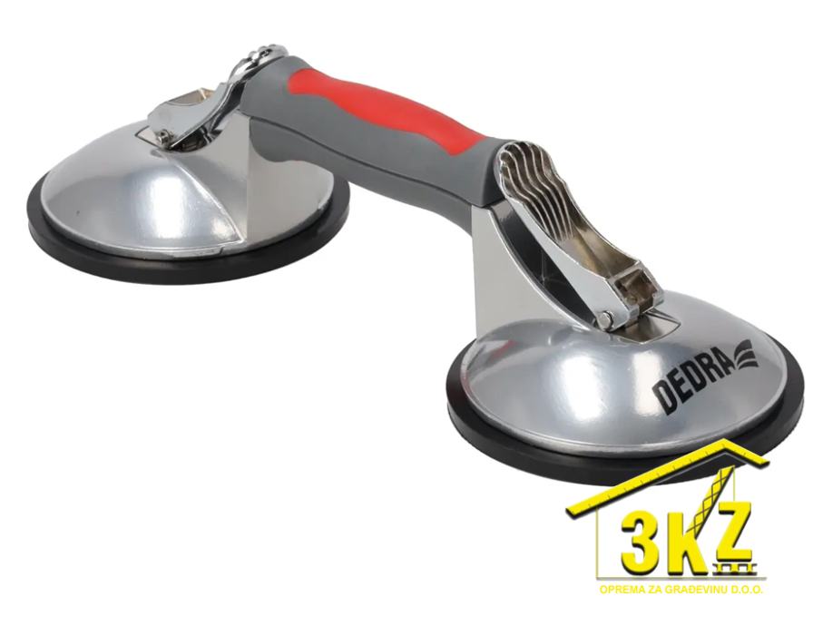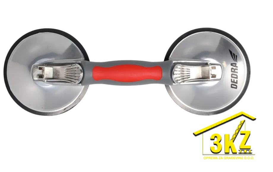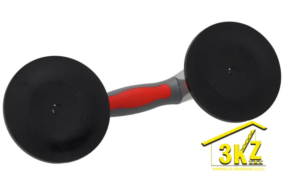 Dvostruki vakuumski nosač za transport kamenih ploča, keramičkih pločica ili stakla. Tijelo vakuumske čašice izrađeno je od aluminija, što je čini laganom, ali vrlo izdržljivom. Osim toga, proizvod ima dvokomponentnu ručku kako bi se osigurala pouzdanost i stabilnost prilikom upotrebe.