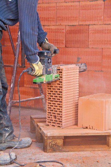 - Rezanje vertikalne opeke s jezgrom (npr. Poroton®), siporexa, drva i tvrdih izolacijskih materijala