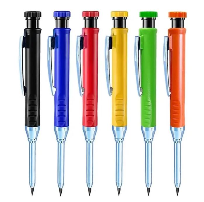 Prodajem građevinske 2B olovke, 2,8 mm, za obilježavanje i crtanje u raznim namjenama.. Uz olovku dolazi šiljilo, poklopac i 6 rezervnih mina u 3 boje..