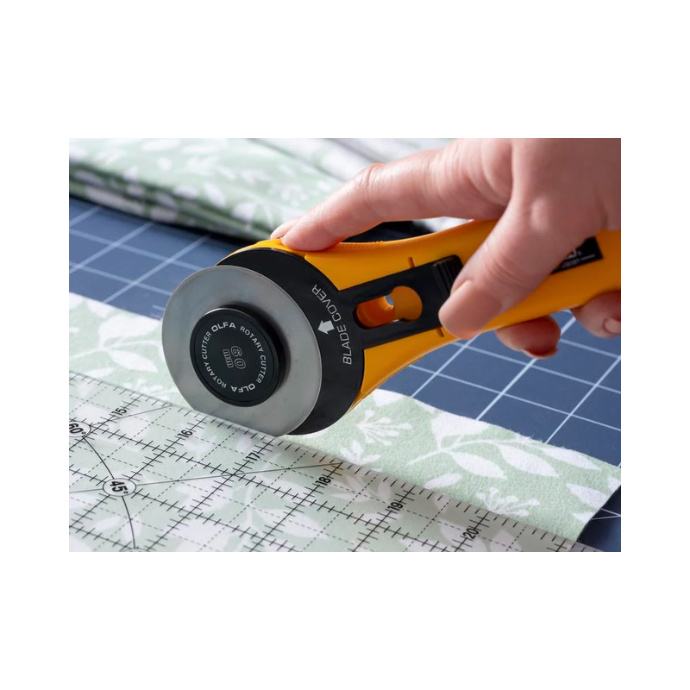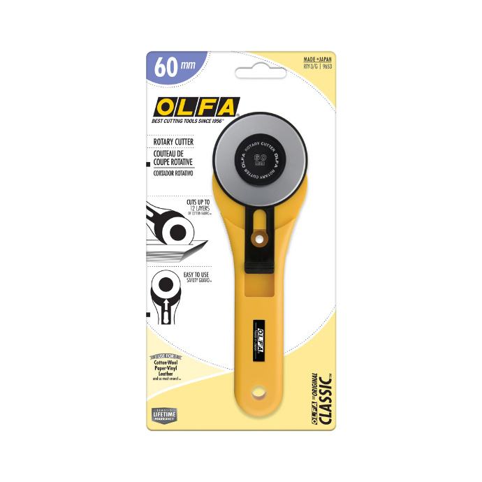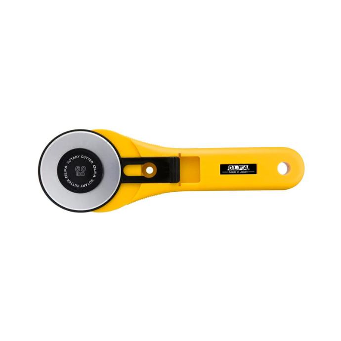 Koristite OLFA 60 mm RTY-3/G rotacijski rezač s ravnom ručkom kada vam je potrebna oštrica za teške uvjete rada za teške projekte. Ovaj OLFA rotacijski rezač ima veliku oštricu od 60 mm od visokokvalitetnog volframovog čelika, koja može rezati do 12 slojeva pamučne tkanine odjednom. Ovaj vrhunski rotacijski rezač savršen je za rezanje tkanina ili kao alat za prošivanje, lako se nosi s pamukom, vunom, papirom, vinilom, kožom i više bez gubitka oštrine. Najbolji rotacijski rezač također je siguran za korištenje i skladištenje s jednostavnim poklopcem za oštricu.