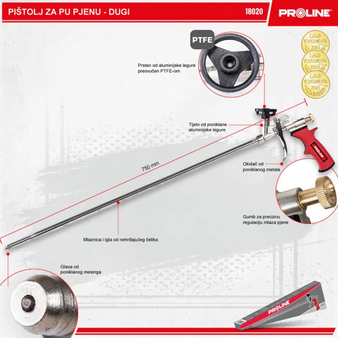 Pištolj za poliuretansku pjenu, za zapunjavanje na teško dostupnim mjestima