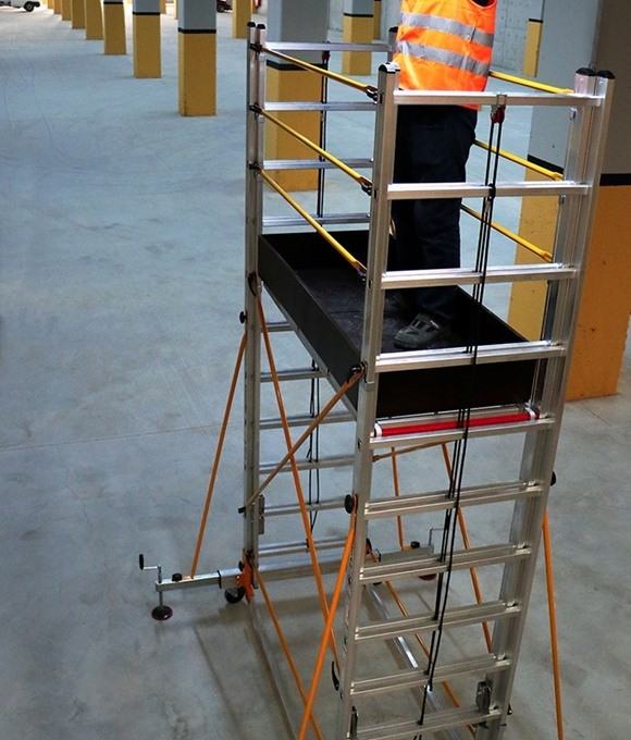 Model TeleSafe je TÜV-SÜD i TSE EN1004 certificirani sustav profesionalnih skela koji se može kretati na kotačima, na bilo kojoj površini.