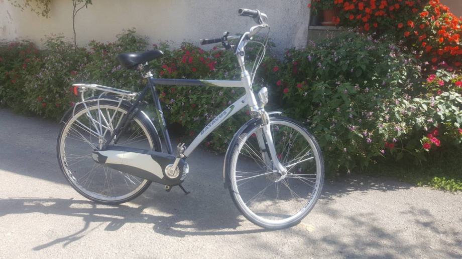 Vrhunski gradski bicikl, alu ram, pojacane alu felge, 8 brzina u zadnjoj nabi, zastita lanca, dinama u prednjoj nabi, amortizeri....