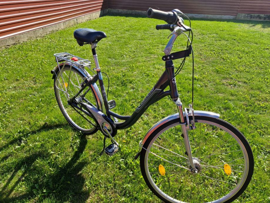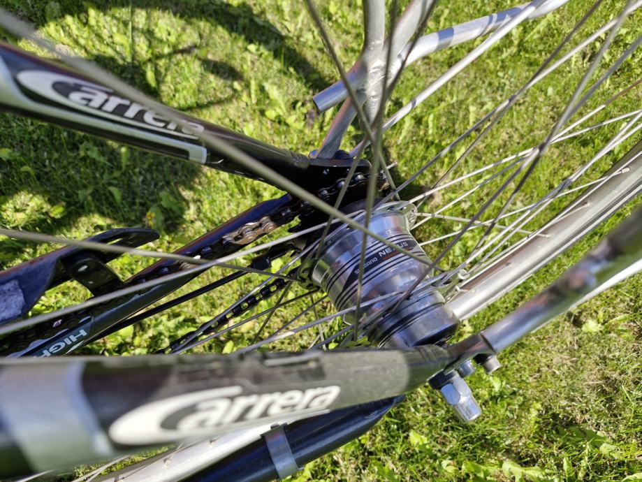 Prodajem bicikl marke "Carrera", Shimano prijenos, radi se o tzv. hibridnom biciklu što znači da je izvrstan za cestu i makadamske staze. Udoban, IZNIMNO ČVRST, 7 brzina. BICIKL JE U IZVRSNOM STANJU!!! Potrebno podesiti 3 ili 4 brzinu (primijećeni da preskače)