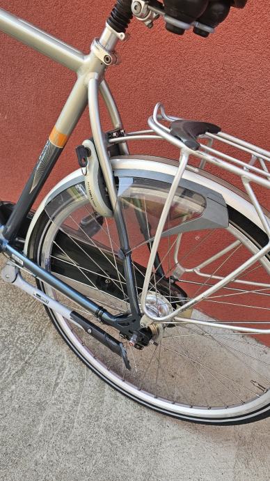 Jako kvalitetan i ocuvan bicikl, velicina rame 57 cm, 7 brzina u zadnjoj glavi, podesavanje upravljaca, dinama u prednjem tocku, amortizeri, gel sjediste udobno.