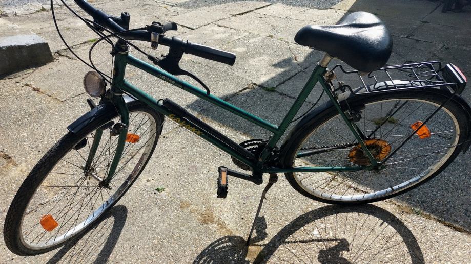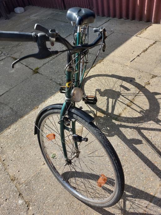 Prodajem bicikl gradski malo korišten, njemačke proizvodnje, potpuno ispravan 28 cola, sa 24 brzine, shimano mjenjač, anatomsko sjedalo, bočni nogar, okolica Bjelovara, cijena je 95 eura. Info na mob 098/960-8663.