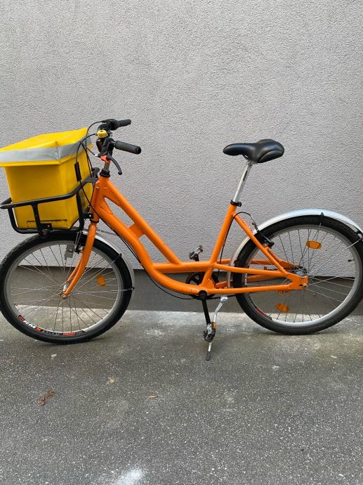 Bicikl s košarom idealan za vožnju i dostavljanje šopinga. Košara je velika i čvrsta, nije od laganini plastike.
