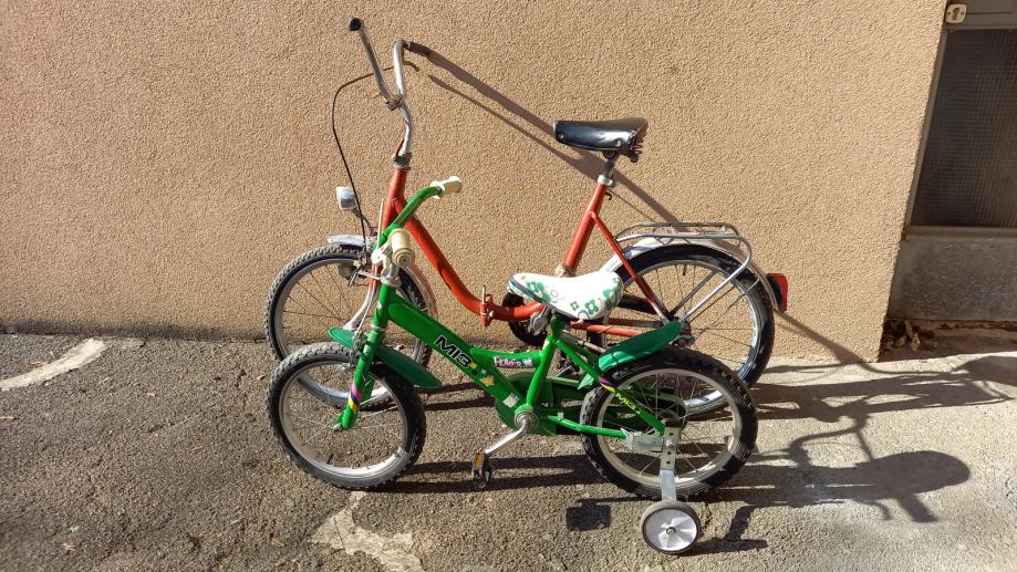 Prodajem bicikl Pony, kotači 20", cijena je 40 eura i dječji bicikl, kotači 16", cijena je 20 eura, oba su u voznom stanju, cijena za oba je 55 eura.