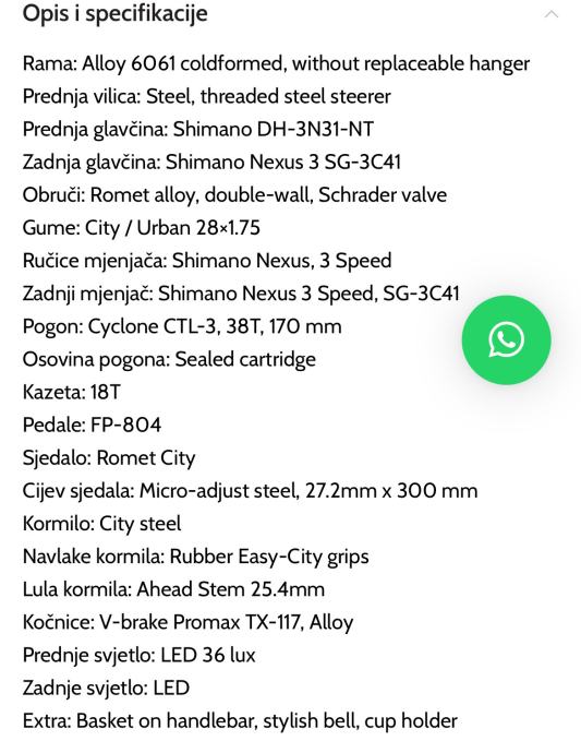 Prodajem potpuno novi ženski bicikl Romet Pop Art Classic s kotačima veličine 26 inča. Elegantni gradski bicikl dolazi s košaricom sprijeda i udobnim sjedalom, idealan za svakodnevnu vožnju po gradu. Shimano mjenjač s 3 brzine omogućava laganu vožnju po svim gradskim terenima.