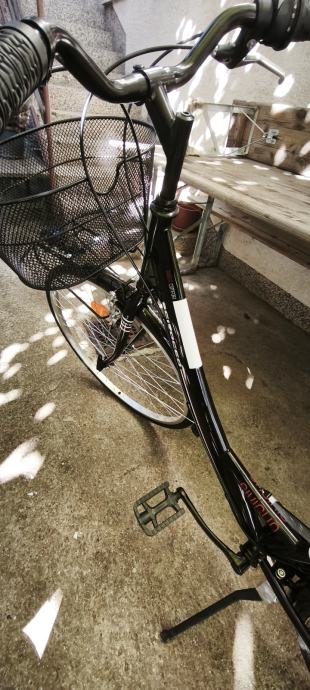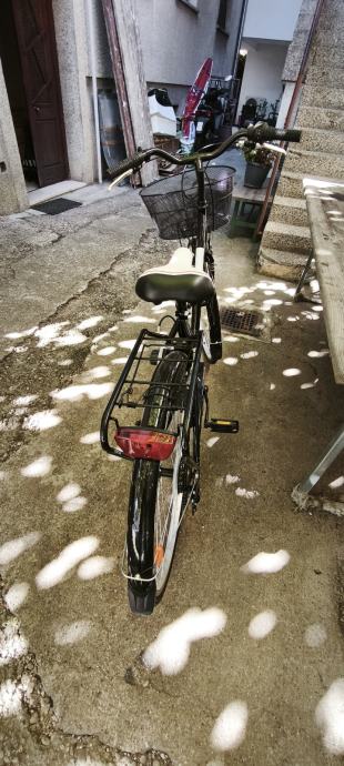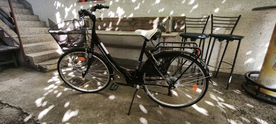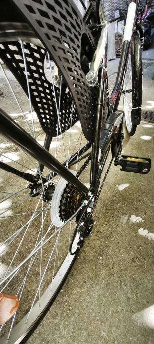 Prodajem novi ženski bicikl marke Scciroco. Univerzalna veličina. Bicikl ima 6 brzina, prednje i zadnje blatobrane te zadnji nosač tereta i košaricu sa prednje strane. Isto tako ima prednje i stražnje svijetlo, zvonce te nogar za oslanjanje bicikla. Odličan cestovni model za nježniji spol. Okretan vrlo malih dimenzija, praktičan i lagan. Stvoren za lagane rekreativne vožnje!
