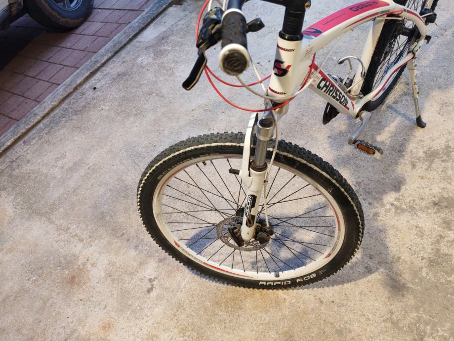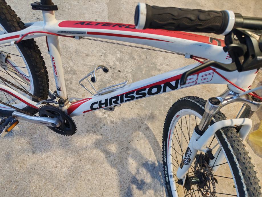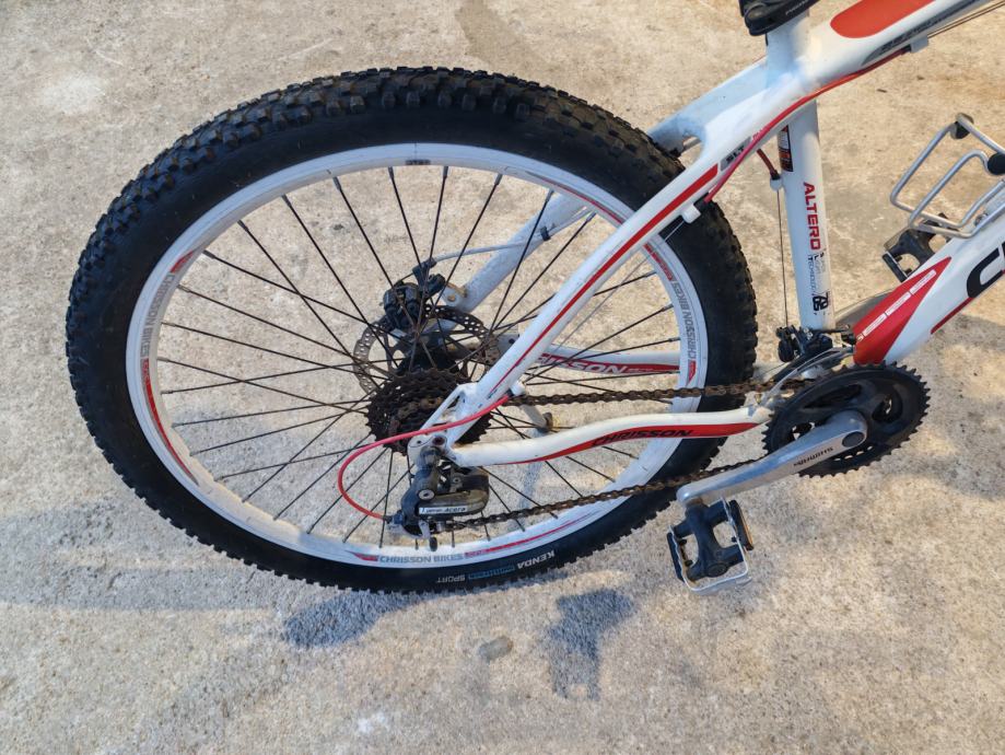 Prodaje se ženska bicikla crisson 26 altero u jako dobrom stanju crveno bijele boje potpuno ispravna i funkcionalna bez dodatnih ulaganja ili skrivenih troškova popravaka koja se prodaje isključivo jer se ne koristi zadnjih dvije godine tj.nakon obavljenoga servisa više nije korištena.ista se prodaje za iznos od 120 eura. Kontakt tel.0922981036