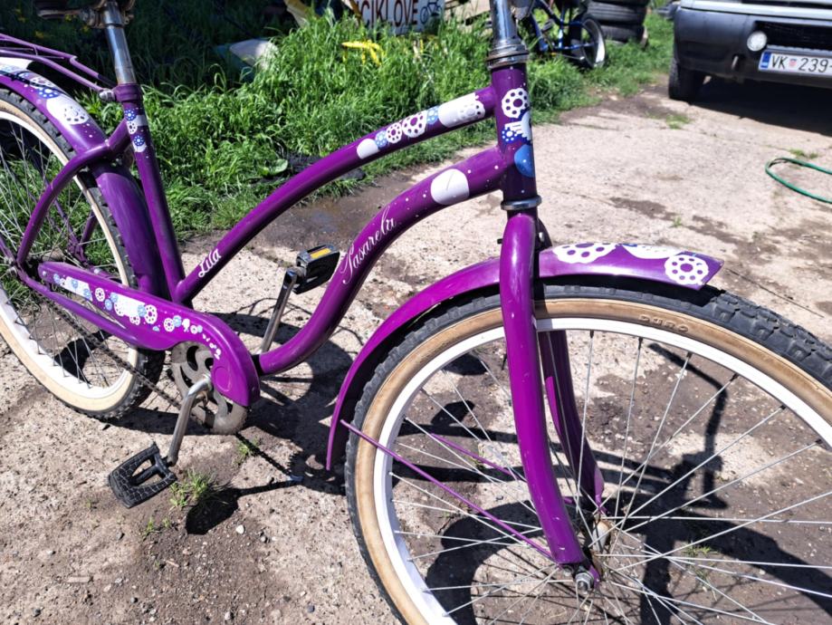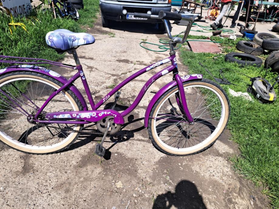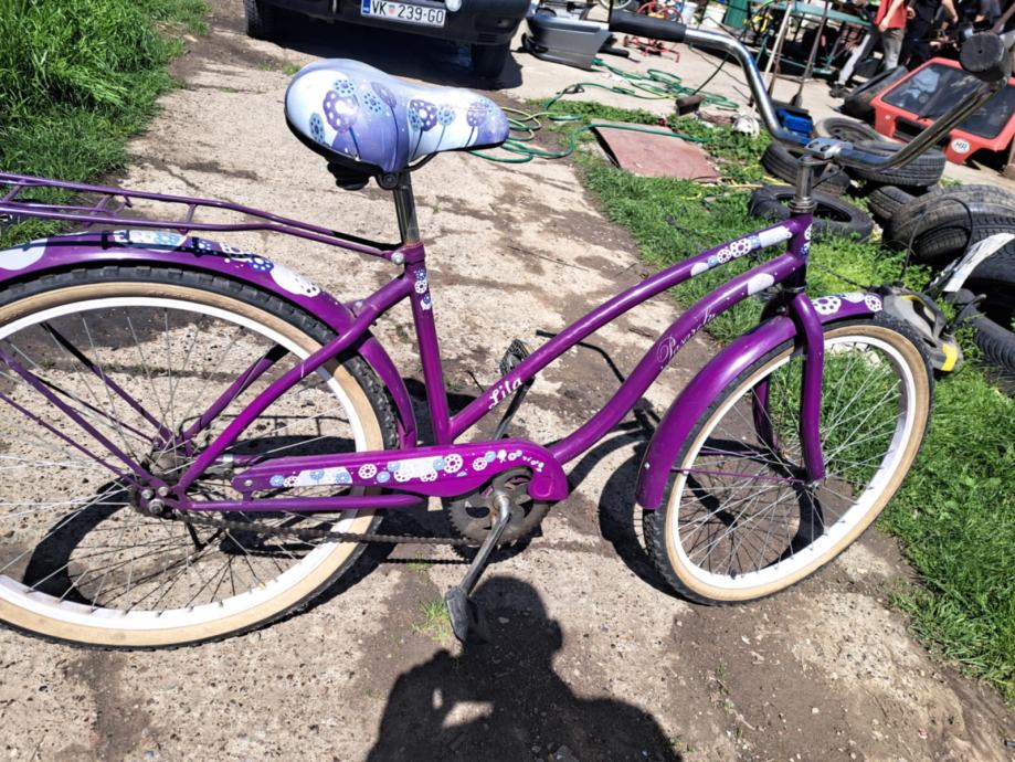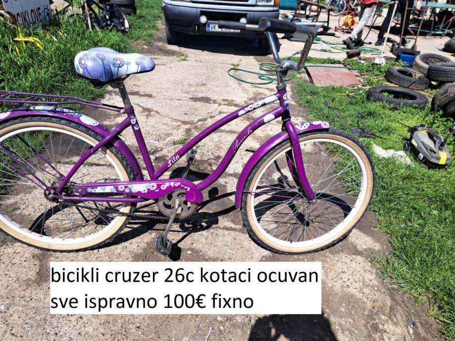 prodajem zenski bicikli cruzer lila boje ocuvan sve ispravno kotaci 26 coli gume dobre cijena 100 eura fixno