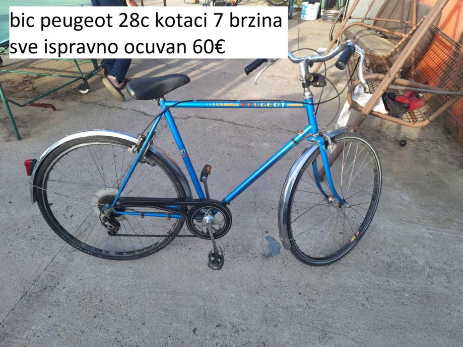 prodajem muski gradski bicikli peugeot velicina rame 58cm kotaci ravni 28 coli uske gume lagan za vozit ima 7 brzina sve ispravno kao i obje kocnice cijena 60 eura fixno