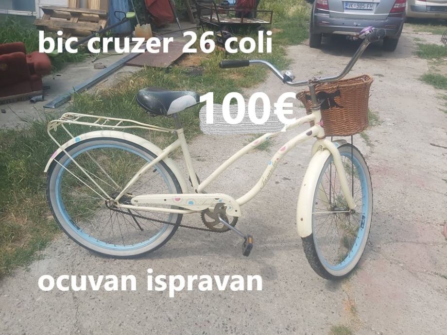 prodajem bicikli cruzer kotaci ravni 26 coli gume dobre nozna torpedo kocnica bic ocuvan i potpuno ispravan cijena 100€ moze osobno preuzimanje ili slanje postom ili busom ako smo daleko postom saljem nakon uplate samo za postarinu