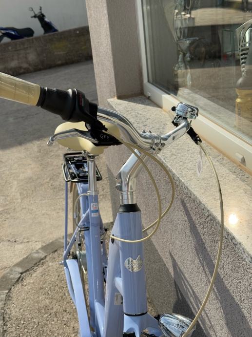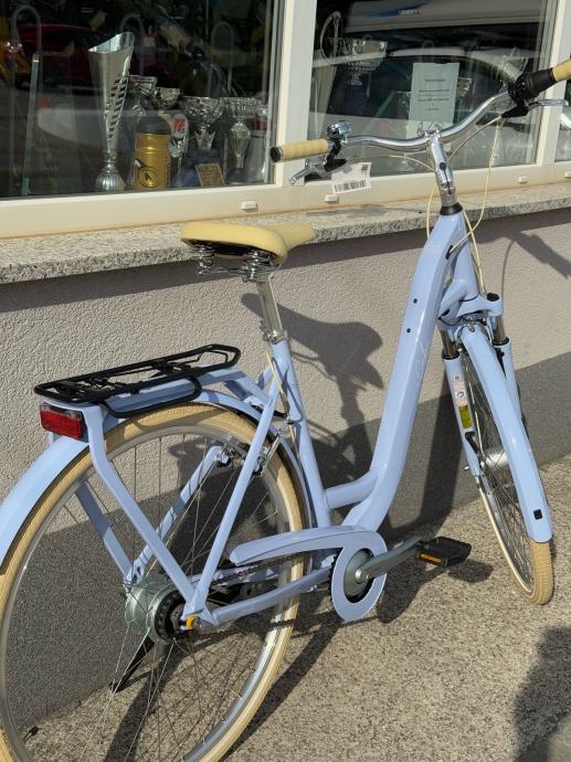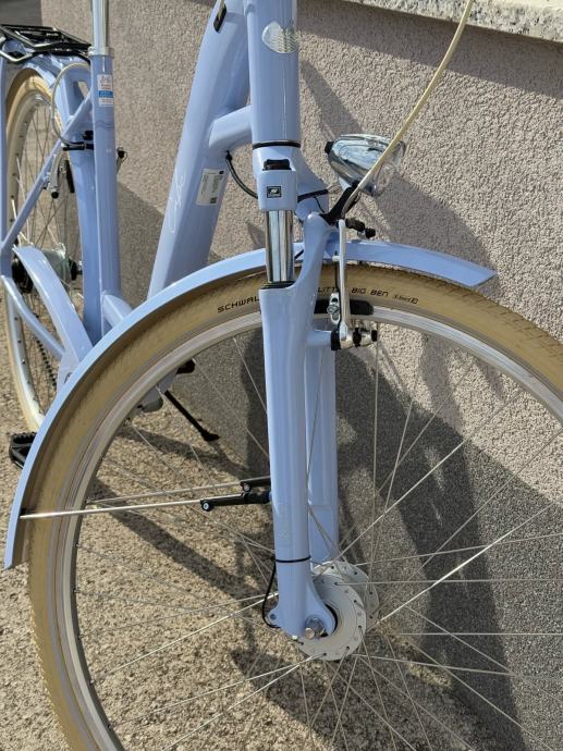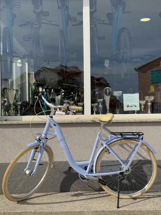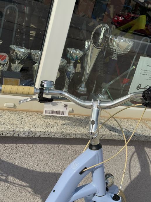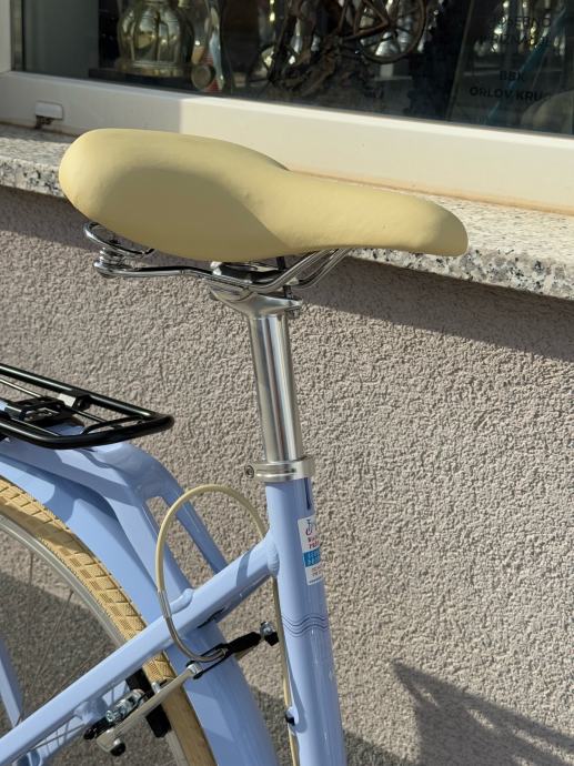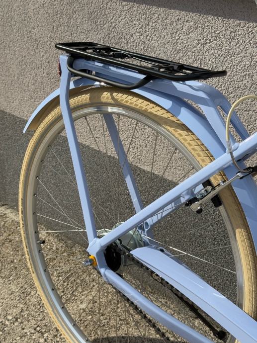 No Aruba nije samo lijep bicikl – ona je i potpuno opremljena za praktičnu vožnju. Shimano 8-brzinski nexus naba jamči jednostavno i pouzdano mijenjanje brzina, dok suspenzijska vilica i udobna geometrija osiguravaju glatku vožnju. Tu su i dynamo svjetla, blatobrani, nogara i zaštita lanca u boji, što ga čini spremnim za svaku vožnju – bilo da je riječ o odlasku na posao, laganoj gradskoj vožnji ili izletu na selo.