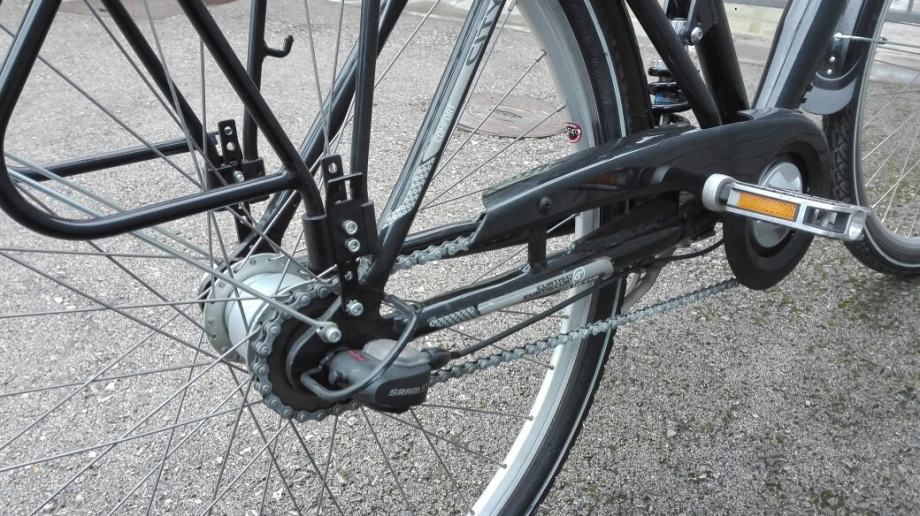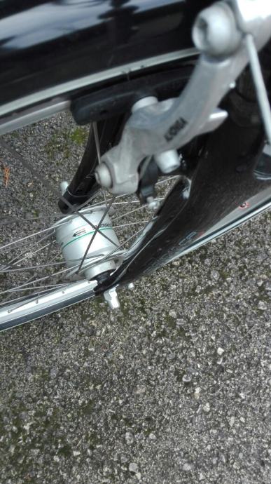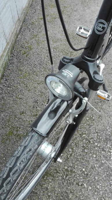 IMA U PREDNJOM TOCKU DINAMO ZA LED SVIJETLO PREDNJE I ZADNJE KOJE SVIJETLI I NAKON STAJANJA BICIKLA NA SEMAFORU RADI SIGURNOSTI