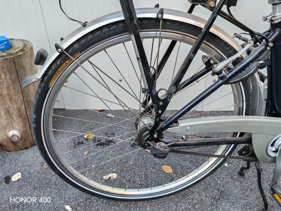 Prodajem rabljeni električni gradski bicikl s kotačima veličine 28 inča. Bicikl ima udobno nisko sjedalo, prednji električni pogon i praktični nosač na stražnjoj strani. Odlično stanje za svakodnevnu vožnju gradom i laganije ture.