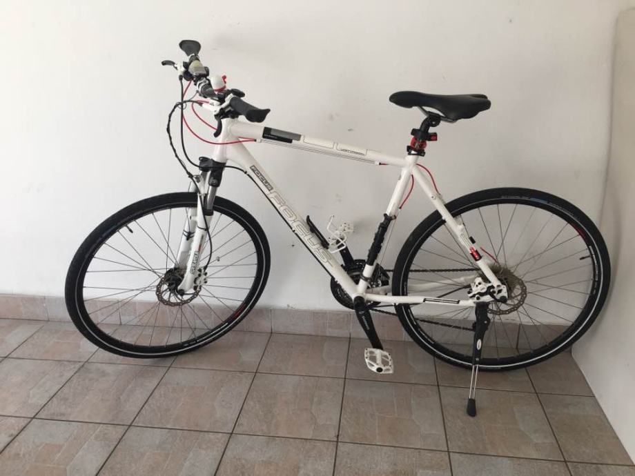 Focus gradski bicikl na rami cross( “L” veličina rame)Shimano SLX full oprema,uljne disk kočnice,prednji amortizer sa lock-unlock modom vožnje,nove Schwalbe Marathon gume.Nikada vožen!