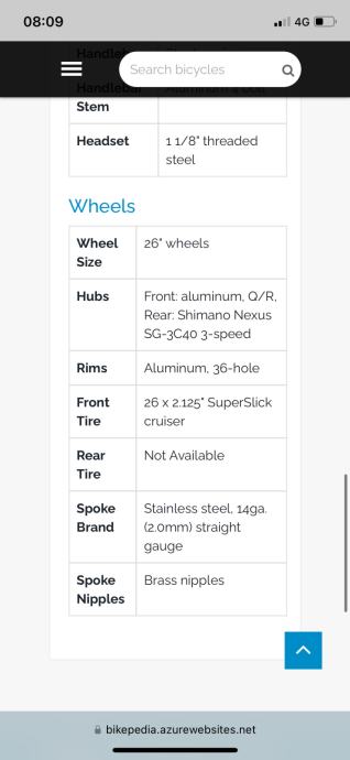 Hubs Front: aluminum, Q/R, Rear: Shimano Nexus SG-3C40 3-speed