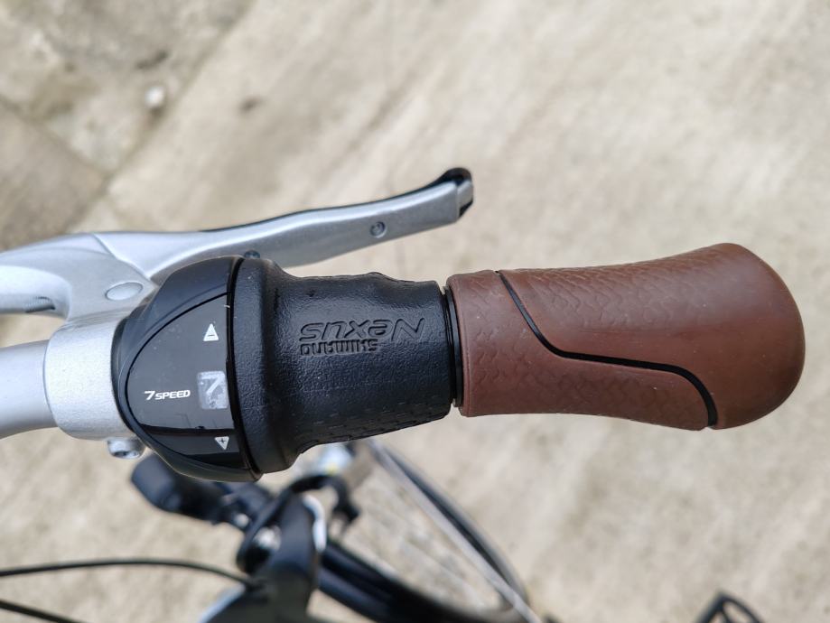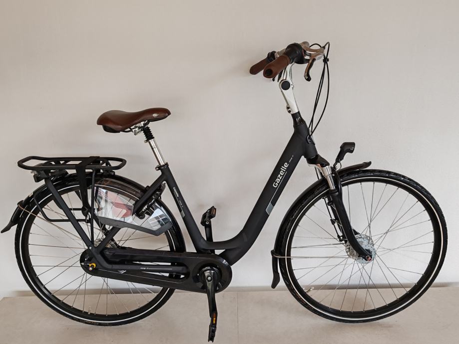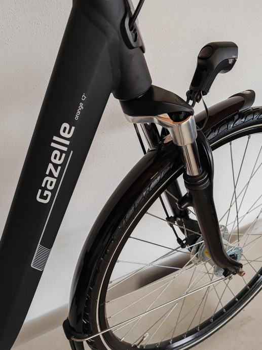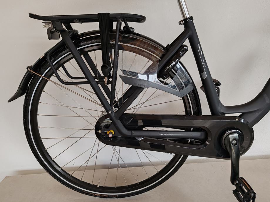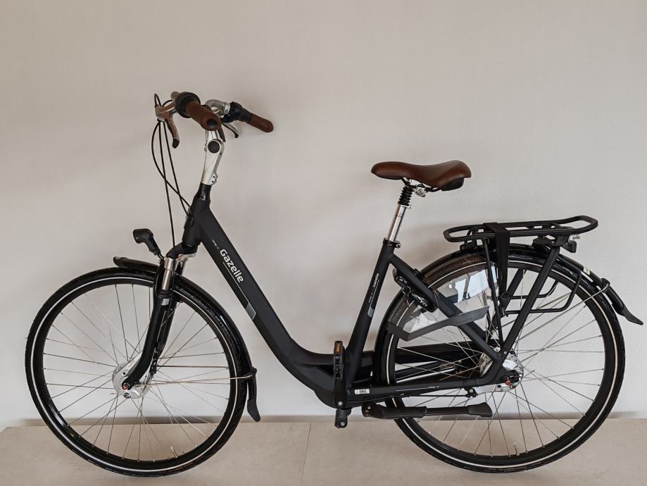 Vrhunski luksuzni Nizozemski gradski bicikl Gazelle Orange C7, aluminijski okvir veličine 49cm, zatvoreni shimano Nexus mjenjač sa 7 brzina, zatvoreni štitnik lanca s automatskim zatezačem, ovjes u prednjoj vilici, ovjes sjedala, podesivi upravljač za najbolji položaj u vožnji, luksuzno gel sedlo, roll shimano kočnice bez održavanja, dinama u prednjoj osovini a zadnja na baterije, aluminijski nosač prtljage sa elastičnom gumom, štitnik za žbice, Axa defender brava sa dvostrukim zaključavanjem i dva ključa, retrovizor, ergonomske ručke sa integriranim zvonom. Bicikl je u novom stanju i bez tragova korištenja "NOV". Mogućnost dostave do Zagreba, Osijeka, Vukovara, Đakova, Broda, Kutine, Popovače.