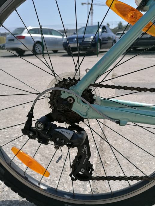 Ženska gradska bicikla u izvrsnom stanju, potpuno ispravna i održavana. Shimano 3x6 brzina, Giant kvaliteta, lijepa boja, blatobrani, nogar