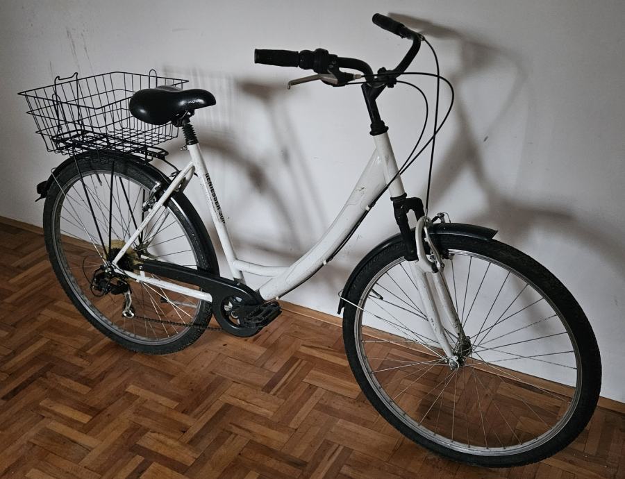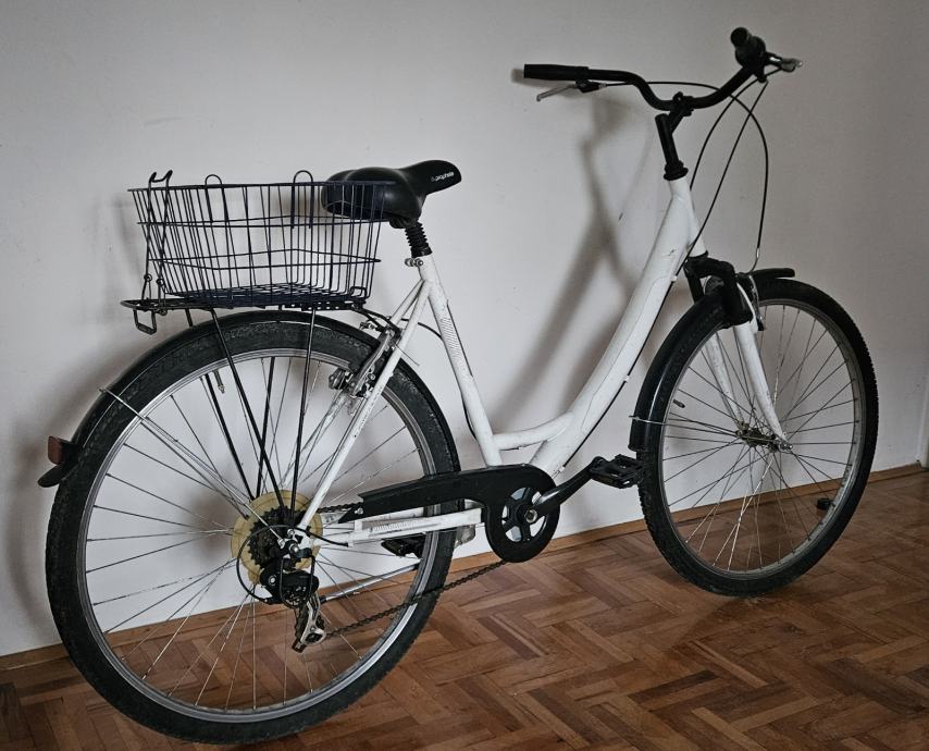 Udoban sic, SHIMANO Tourney 7 brzina, lancobran, blatobrani, košarica, nogica, široke gradske gume.
