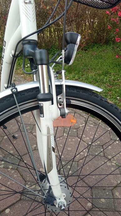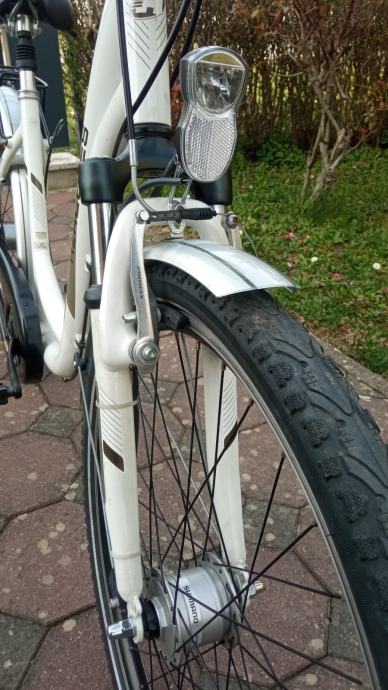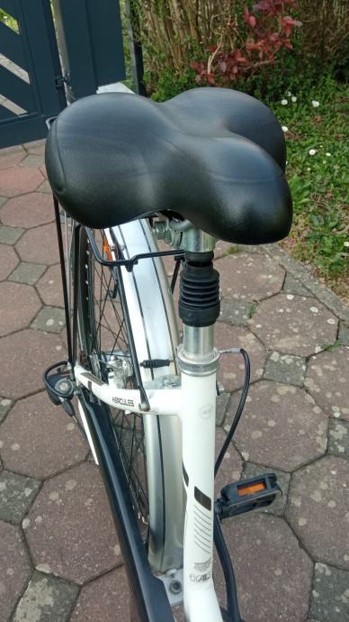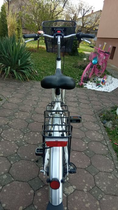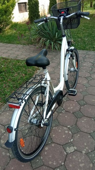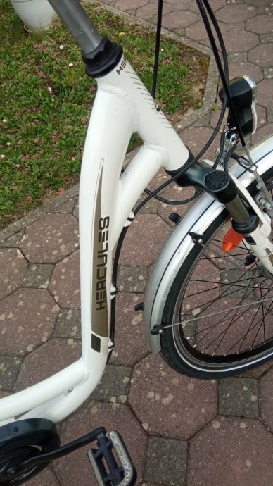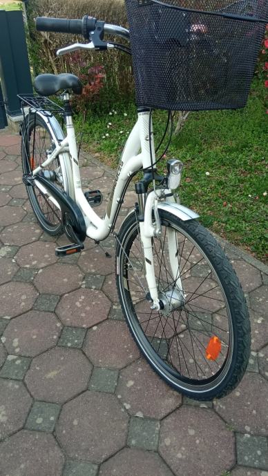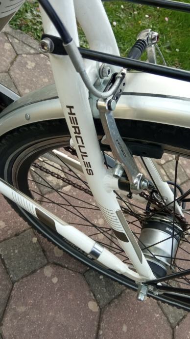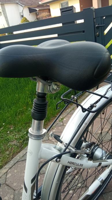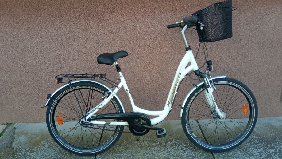 prodajem iznimno kvalitetan luksuzni gradski bicikl renomiranog njemačkog proizvođača HERCULES u stanju doslovno kao nov,potpuno niska aluminijska rama za lakši pristup vozača,najoptimalniji za visinu vozača od 164-186 cm,kotači 26 cola,nove gume s reflektirajućim bočnim trakama i zaštitom protiv bušenja-KENDA DESERT,aluminijske felge s duplom stijenkom za veću nosivost-HERCULES,7 brzina u glavi zadnjeg kotača-SRAM S7,extra jaka full LED svijetla na prekidač i s pozicijama na oba svijetla,SHIMANO dinamo u glavi prednjeg kotača,prednja vilica sa suspenzijom-ZOOM CH-T 120,široki komforni volan,ergonomske ručice volana,potpuno nova prednja košara s sistemom brzog skidanja,bez košare cijena 10 eura niža,polykarbonatni blatobrani-SKS,tri kočnice,dvije na volanu V brake-PROMAX i nožna-SRAM,široko udobno gel sjedalo SELLE ROYAL,šipka sjedala sa amortizerom,paktreger nosivosti do 25 kg,stabilni alu bočni nogar-URSUS,zvono itd,u cijenu uračunata dostava do 50 km u jednom smjeru,bez dostave cijena 9 eura niža,pogledajte i ostale moje oglase