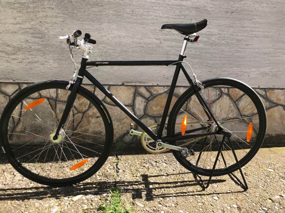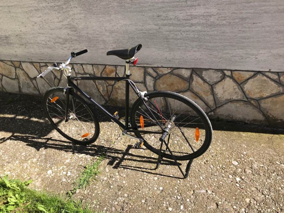 Gradski bicikl sa jednom brzinom. Zadnji zupcanik 18 zuba prednji 50.