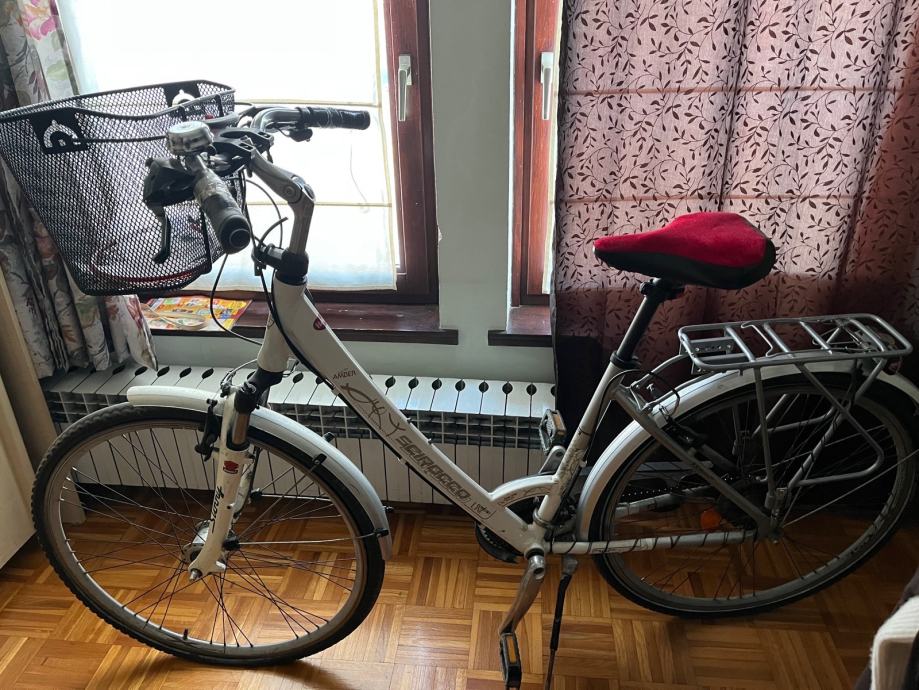 Biciklo u vrlo dobrom stanju, ne koristi se već neko vrijeme stoga su prazne gume. Košaricu i jastučić za sjedalo dajem uz biciklo. Veličina guma 28 cola. Za više info možete mi se javiti