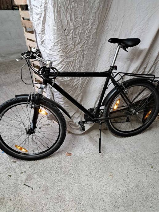Prodajem rabljeni bicikl idealan za gradsku vožnju. Bicikl je crne boje, relativno očuvan (vidljivi tragovi korištenja). Nogica, lokot sa ključem, mačje oci, blatobrani na prednjem i zadnjem kotaču . Sve info pošaljite poruku . Cijena nije fixna.