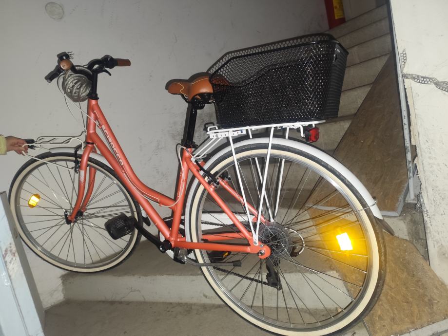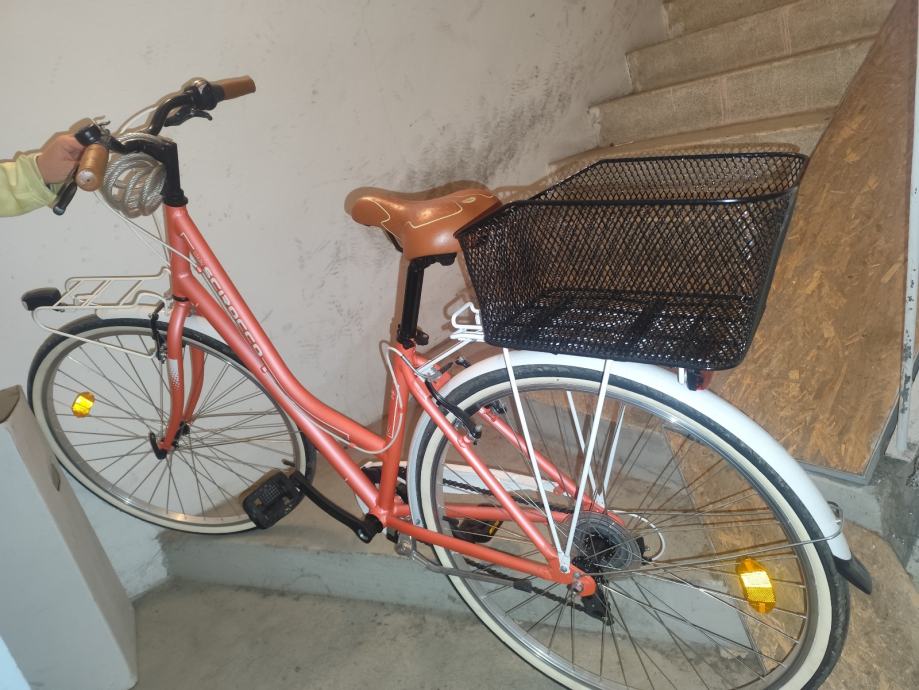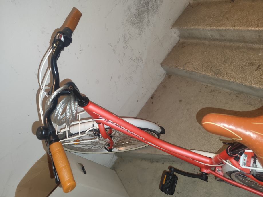 Prodajem gradski bicikl, potpuno nov, jednom vožen i dodatno servisiran nakon kupnje. Original sic i drške na volanima, dodatno dodana i montirana košarica. Razlog prodaje: pre mali, dobiven kao poklon.